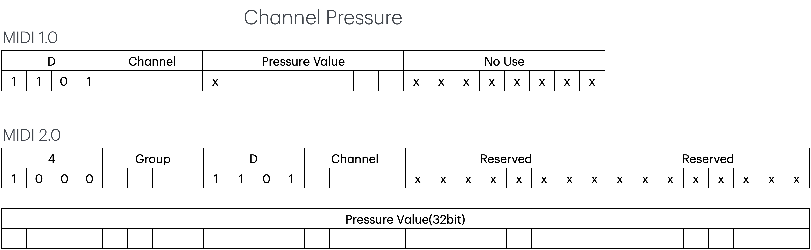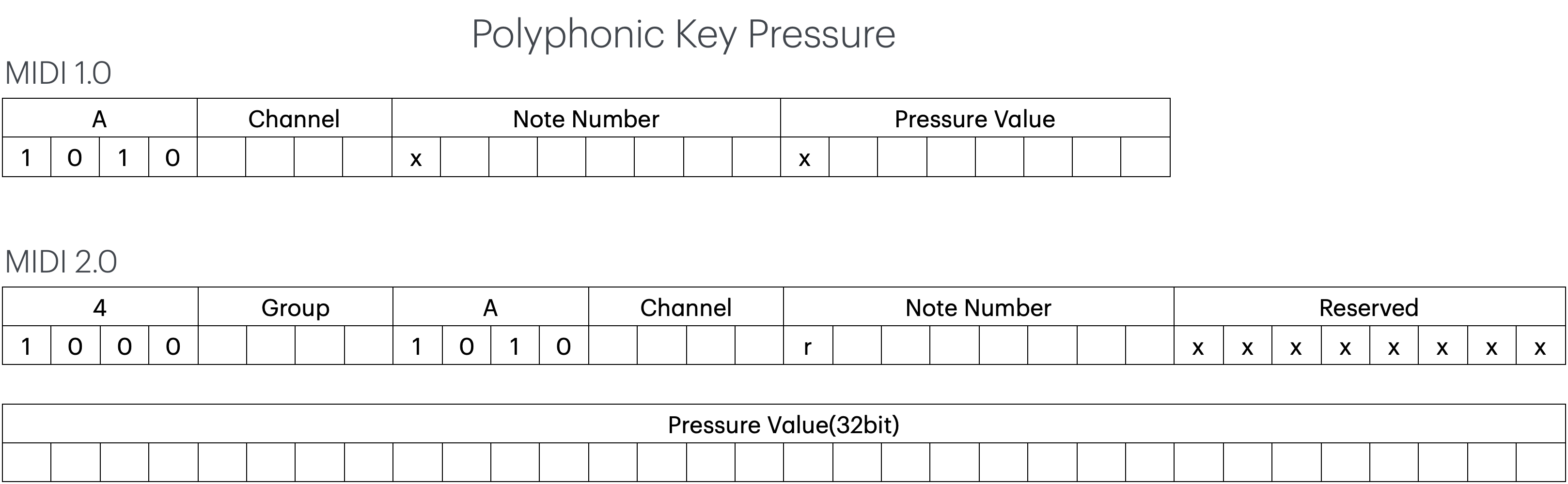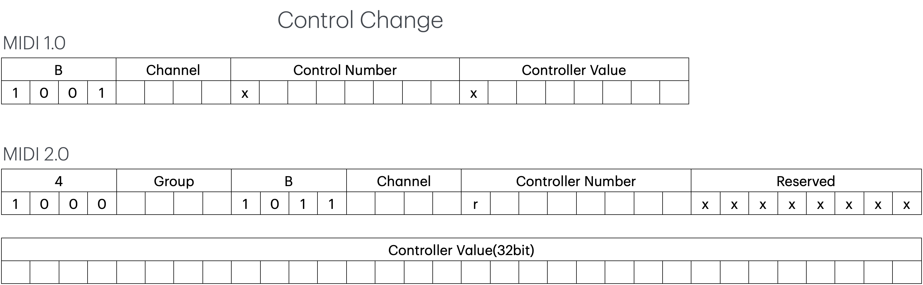 Channel Voice Messages are MIDI messages such as note on, note off, and control change. This means that these messages can be extended using the MIDI 2.0 protocol, which is written in the Universal MIDI Packet (UMP) Format.