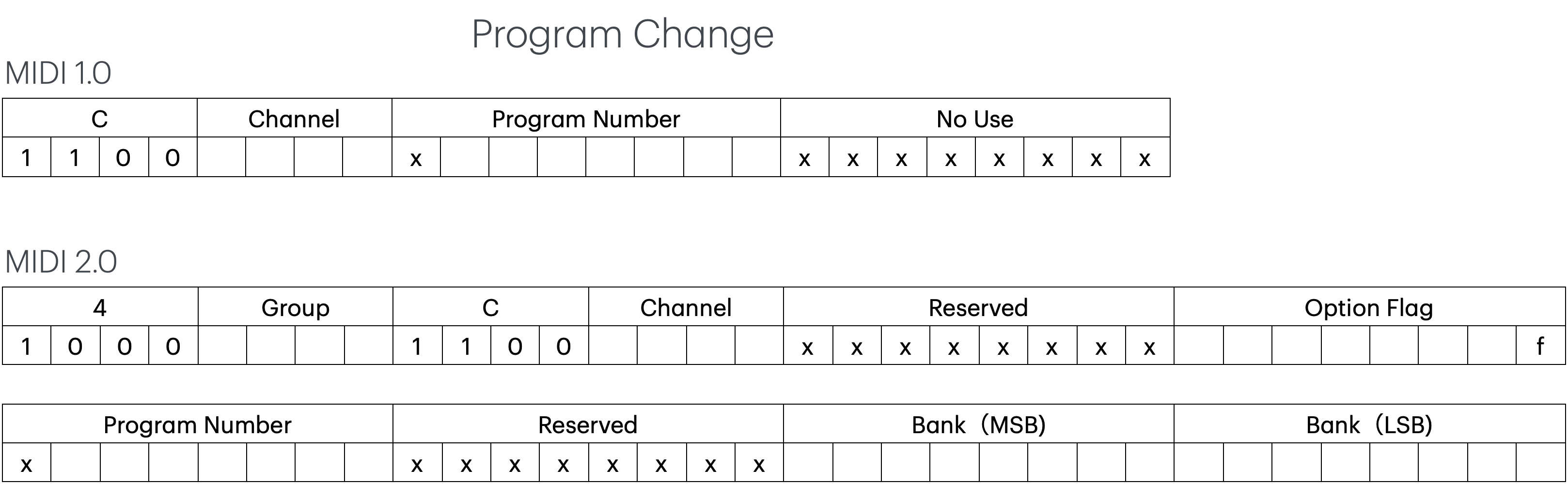 MIDI1.0 program change allows you to set a wide range of sounds' number by combining program change messages with two control change messages called bank select LSB and MSB. MIDI 2.0 combines these two bank selects into one message. The number of selectable programs has not increased.